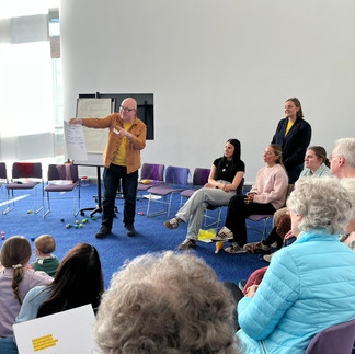 Each session brings together a rich and diverse mix of participants, including local toddler groups, care home residents and members of the public. This intentional intergenerational approach creates a dynamic environment where everyone has something to offer whether through music, movement, storytelling or conversation. Participants are not only engaging creatively, but forming relationships, building confidence and developing a stronger sense of belonging within their community.